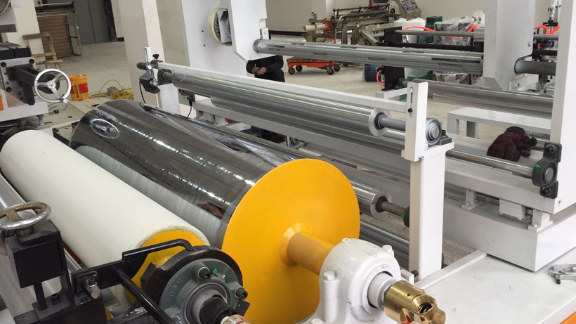 ●三辊式淋膜复合机构,背压辊使复合胶辊受力均匀复合牢固