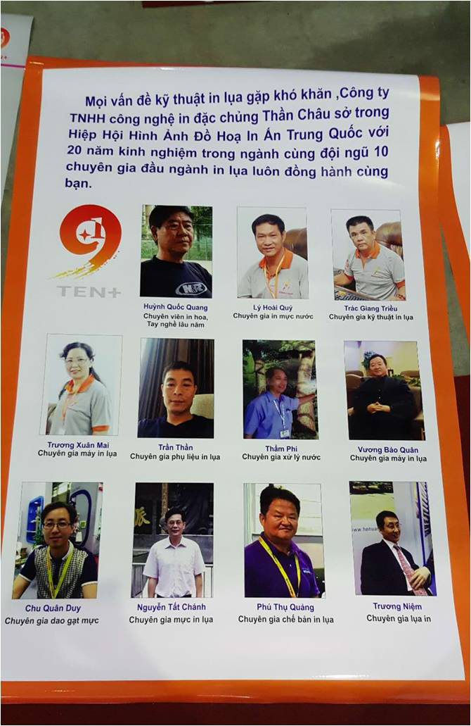 1.越南9+1是由中国境内经验丰富的印花专业配套生产商组建的完整产业链团队,从网框网纱到机械设备印刷工艺提供全方位服务,企业主个人从业经历15年—40年不等,现有胡志明工作人员7名,河内工作人员6名,随时为新老客户提供技术建议技术支持等服务。